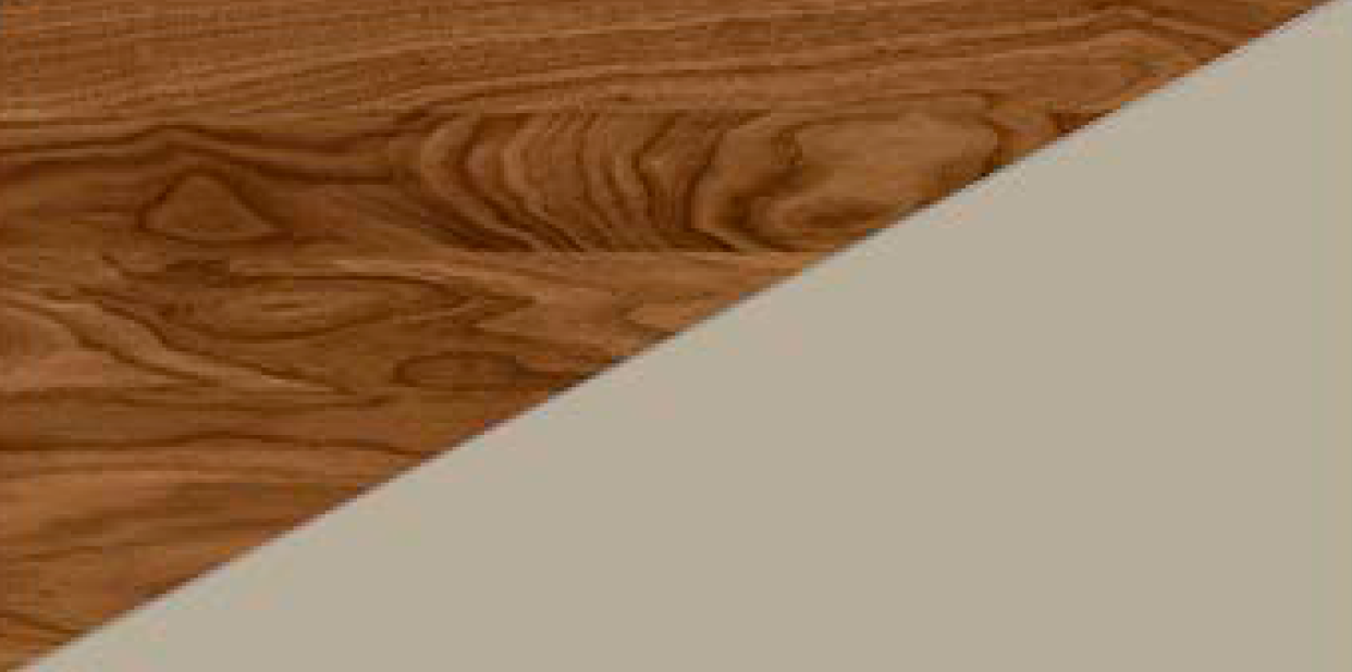 Книжный шкаф в деревянном каркасе с открытыми секциями и остекленными дверцами с раме из металла.